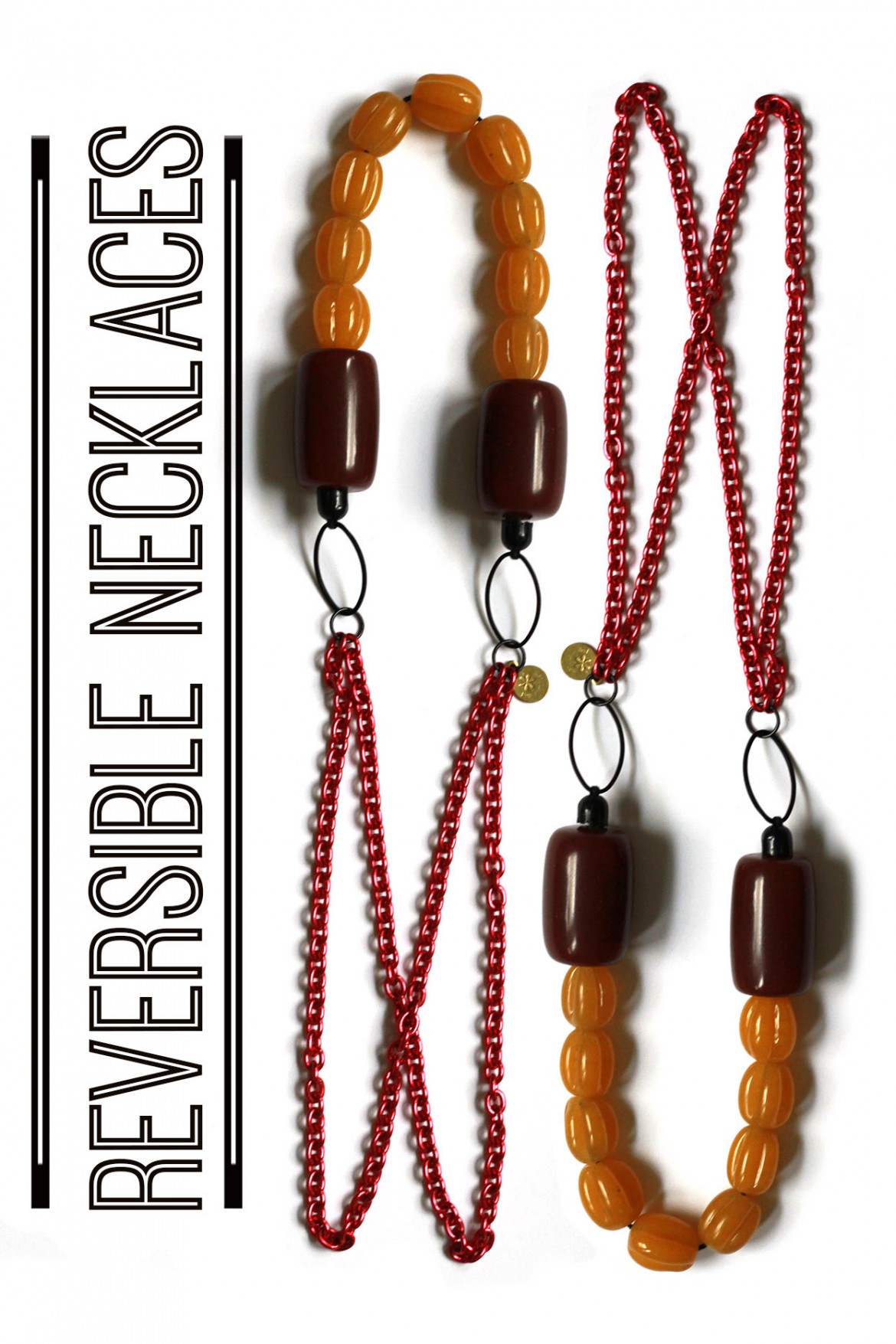 With theses graphic necklaces, colors and shapes are combined together to a pleasing way, letting the colors speak to each other. In this colorful collection, Patricia selected a various range of chains as well as beautiful resin or glas beads, for their graphical quality of shapes and colors in mind. With her selected materials, she compose the necklaces into fresh colorblock pieces. These abstract necklaces, have no up or down, making them playful piece of jewellery to accessorise an outfit.