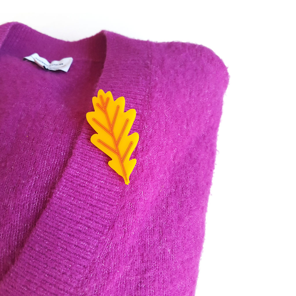 The use of laser-cutting technology allows the sublimation of the natural shape of an autumn leaf. This brooch Combins a geometric pattern of fascinating delicate engraved lines akin to the veins of a leaf, Turning it into a beautiful piece of jewelry you love to wear and display.