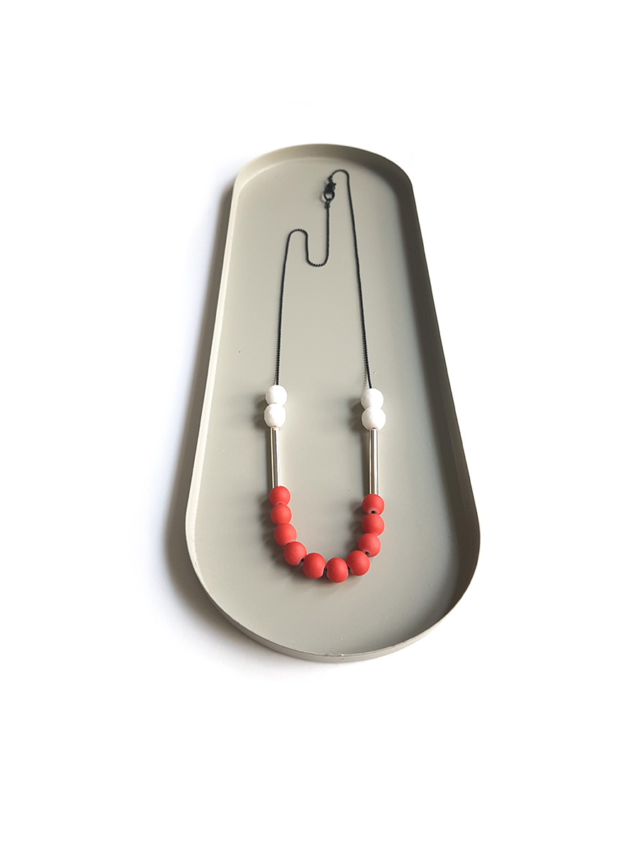 With red & white beads, I created a new casual necklace inspired by my 80’s revival collection!