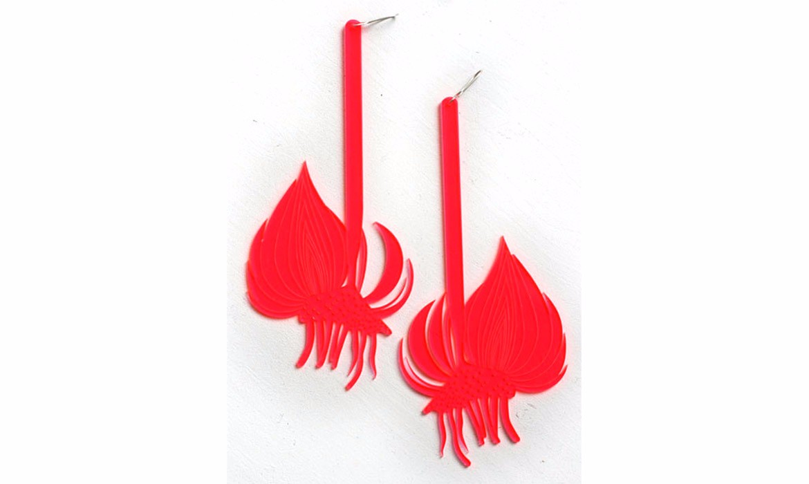 Patricia find beauty in nature beyond the obvious. The bulb family abounds of beautiful internal structures. An onion for example cut in half will reveal a beautiful pattern. Patricia like using unexpected beauty, beauty that will not usually be recognize beautiful. This piece question our recognition of what beauty in nature can be, translating a common onion pattern into a bold & loud piece. Humour is required !