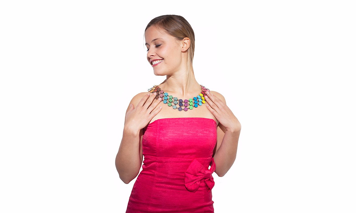 This necklace is a variation in the medium used on the ‘colours of life’ necklace.