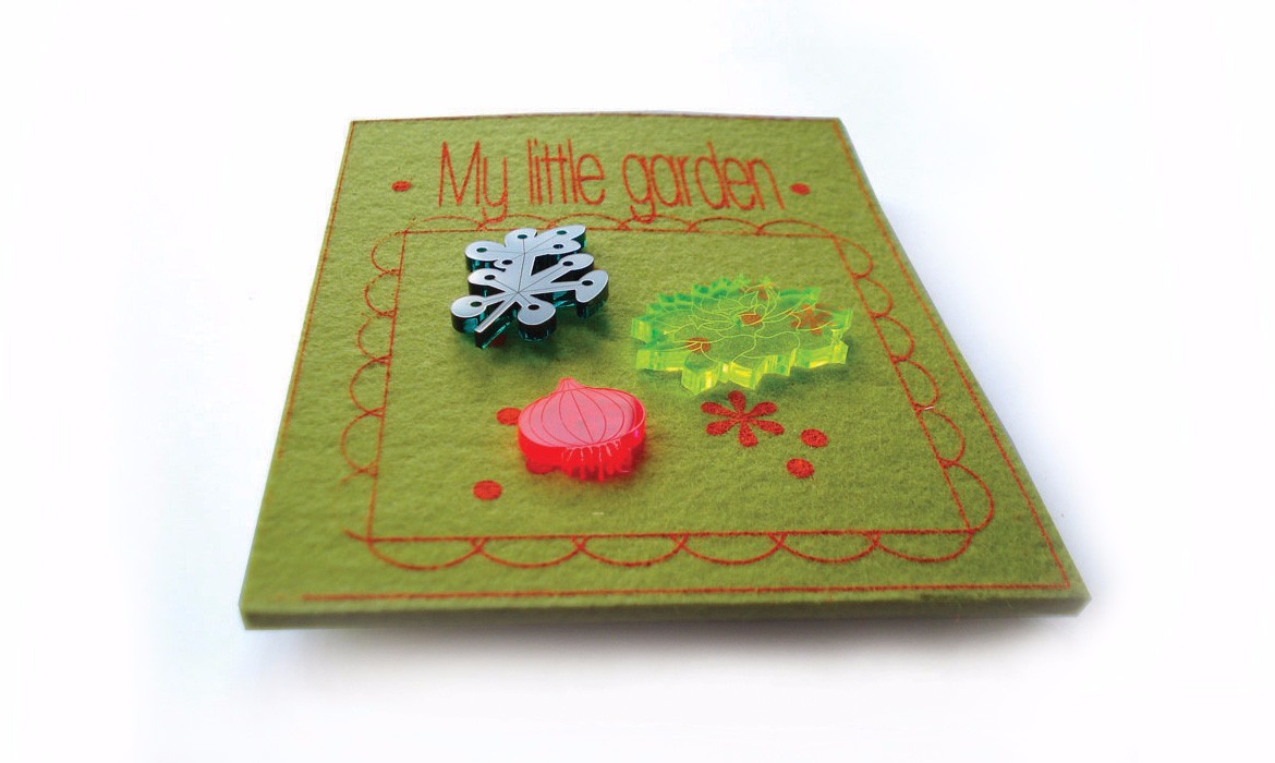 Patricia is interested in the contradiction between machine produced object and nature. Therefore she combine the laser cutting technique and natural shapes to create a new kind of artificial flowers. In this ‘My little garden’ collection, she designed a various range of nature inspired brooch, plants, vegetables or flowers to compose your own little garden on your jacket.