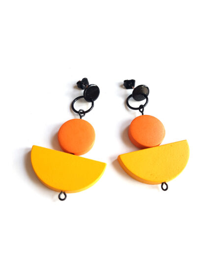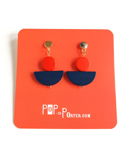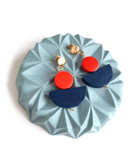 • golden half moon wooden earrings blue & red by Pop-a-porter Golden half moon earrings -blue & red1 × € 28.00