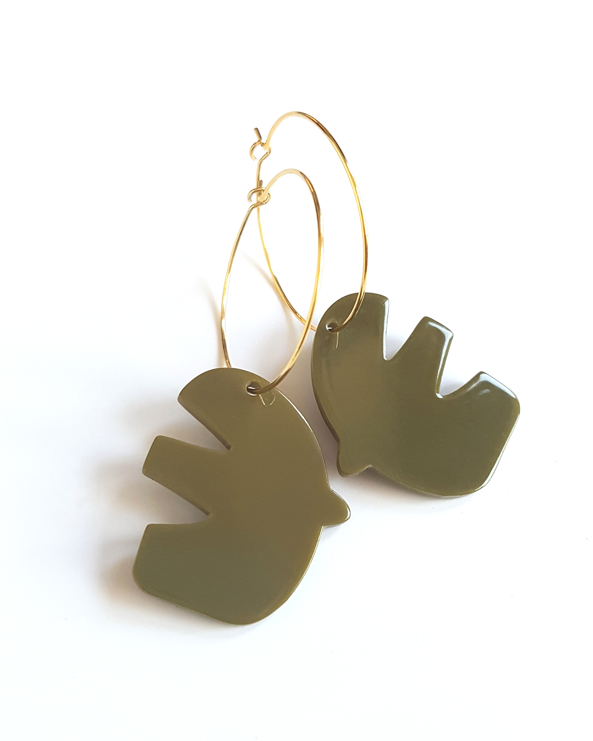 Khaki acrylic bird pendant hanging on gold-plated Creole.