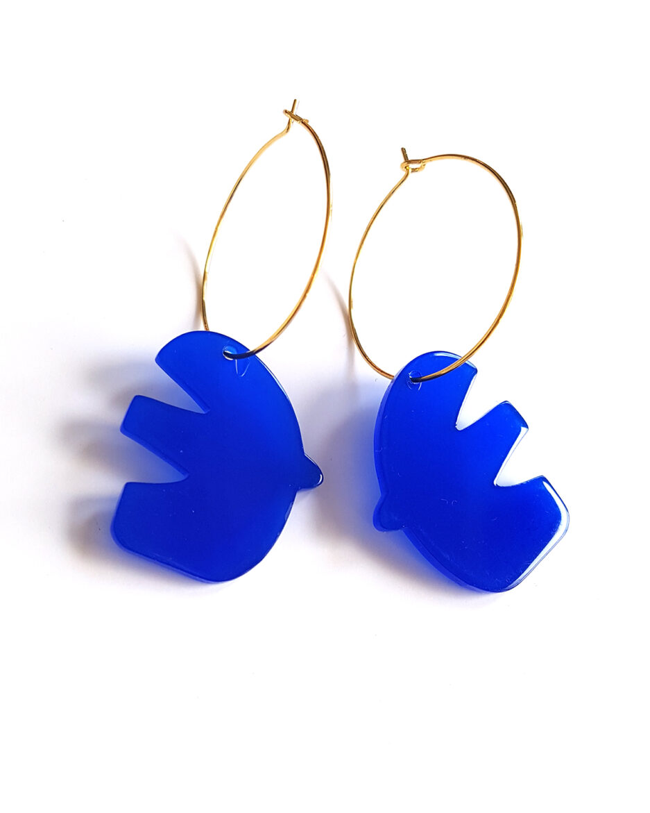 King blue acrylic bird pendant hanging on gold-plated Creole.